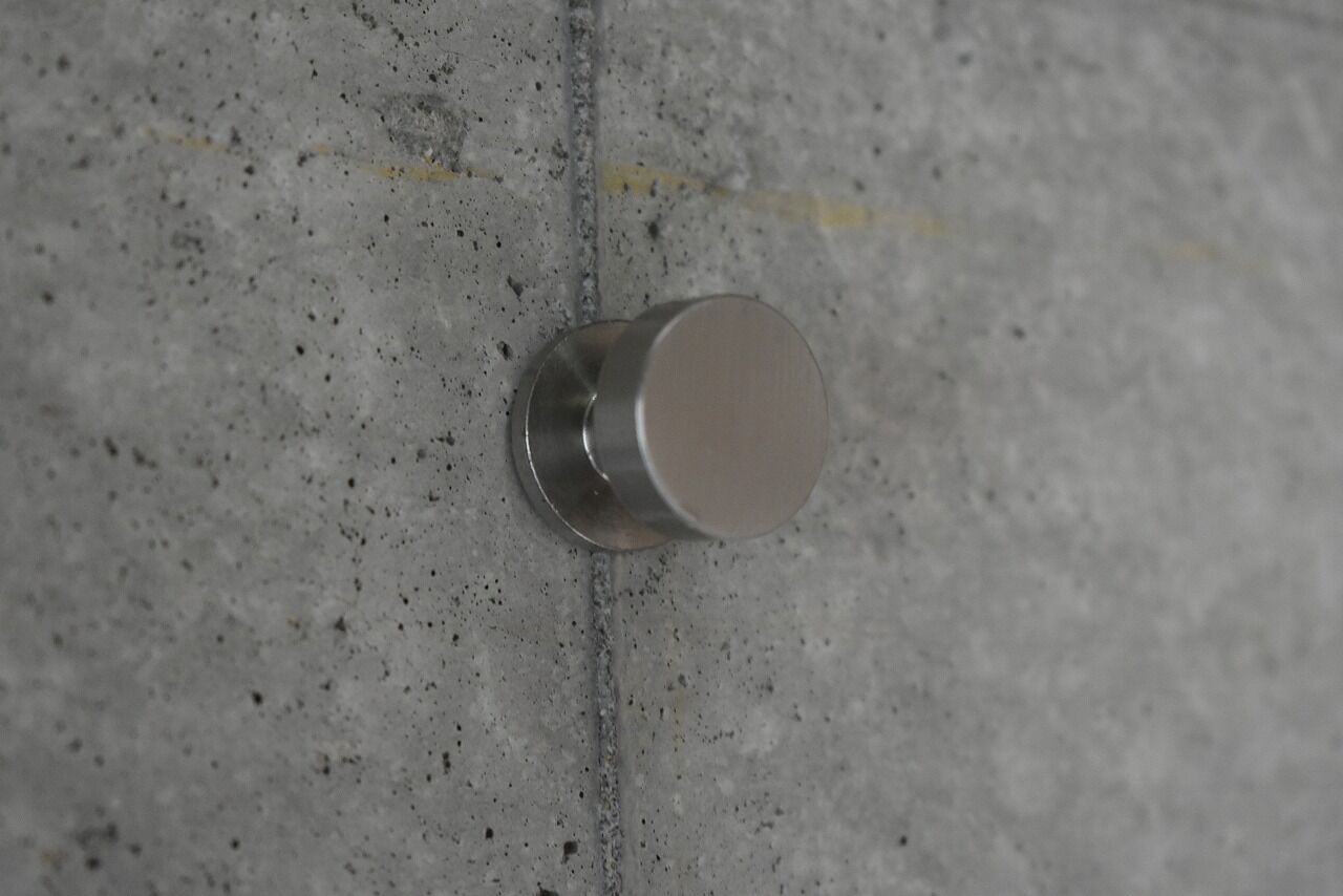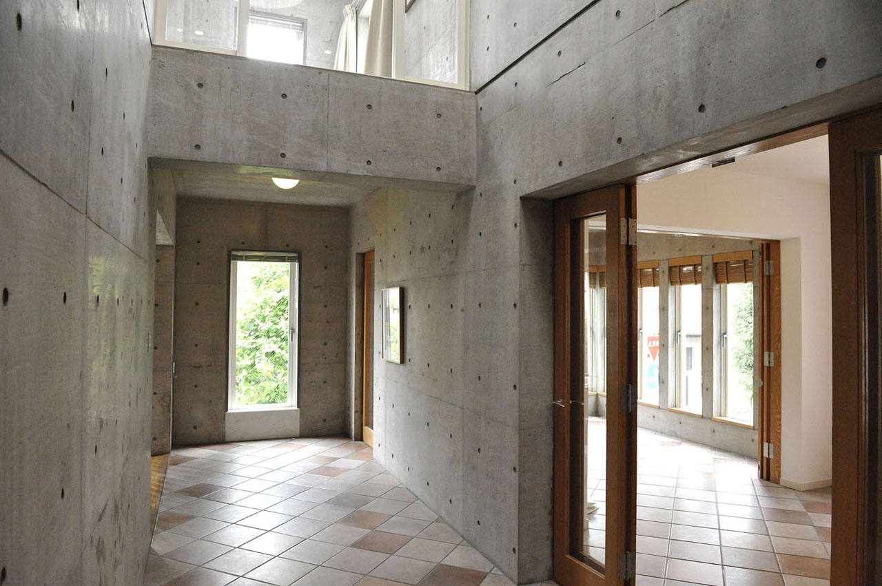 私たちがこの個人住宅をお借りすることになったとき、阿部先生がこのままじゃあ絵も掛けられないだろうと、コンクリート壁面にフックと、玄関天上にだけに照明を設置してくださいました。