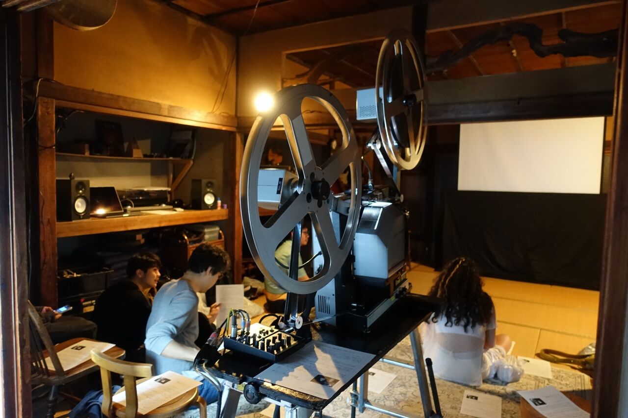 今回のジョナス・メカス上映会を企画し、ご案内をくださったのは、2014年にも横須賀でピアノ演奏付きの素晴らしい上映会を開かれた西村大佑さん。今回も古民家を改装したスペース「飯島商店」に映写機を持ち込んで『営倉』をフィルム上映するという、オリジナリティあふれるイベントを実現されました。