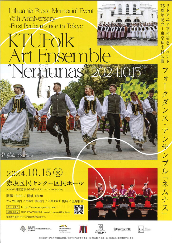 10月15日は、赤坂区民センターでリトアニアのフォークダンス・アンサンブル「ネムナス」の公演に参加しました。