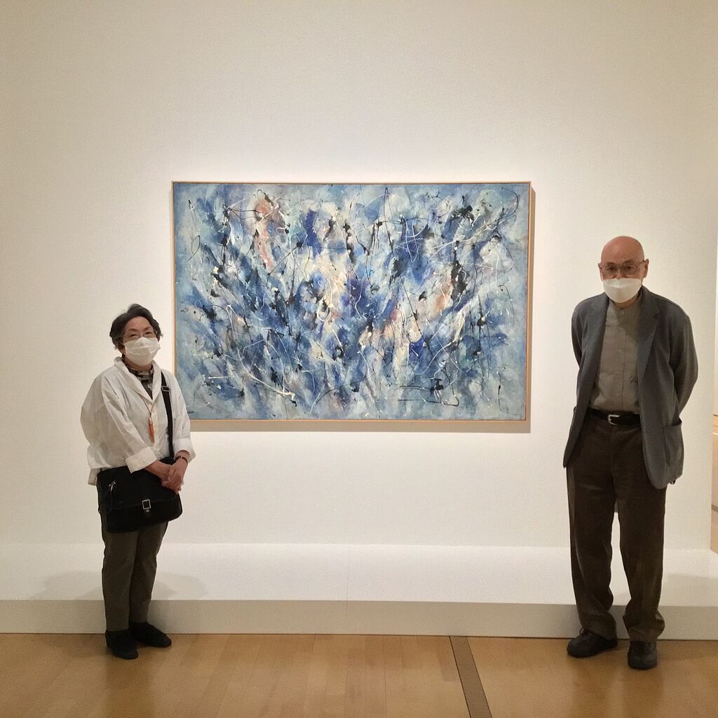 2022年5月ポーラ美術館にて、「生命体の集合」(油彩120号)の前で社長と亭主