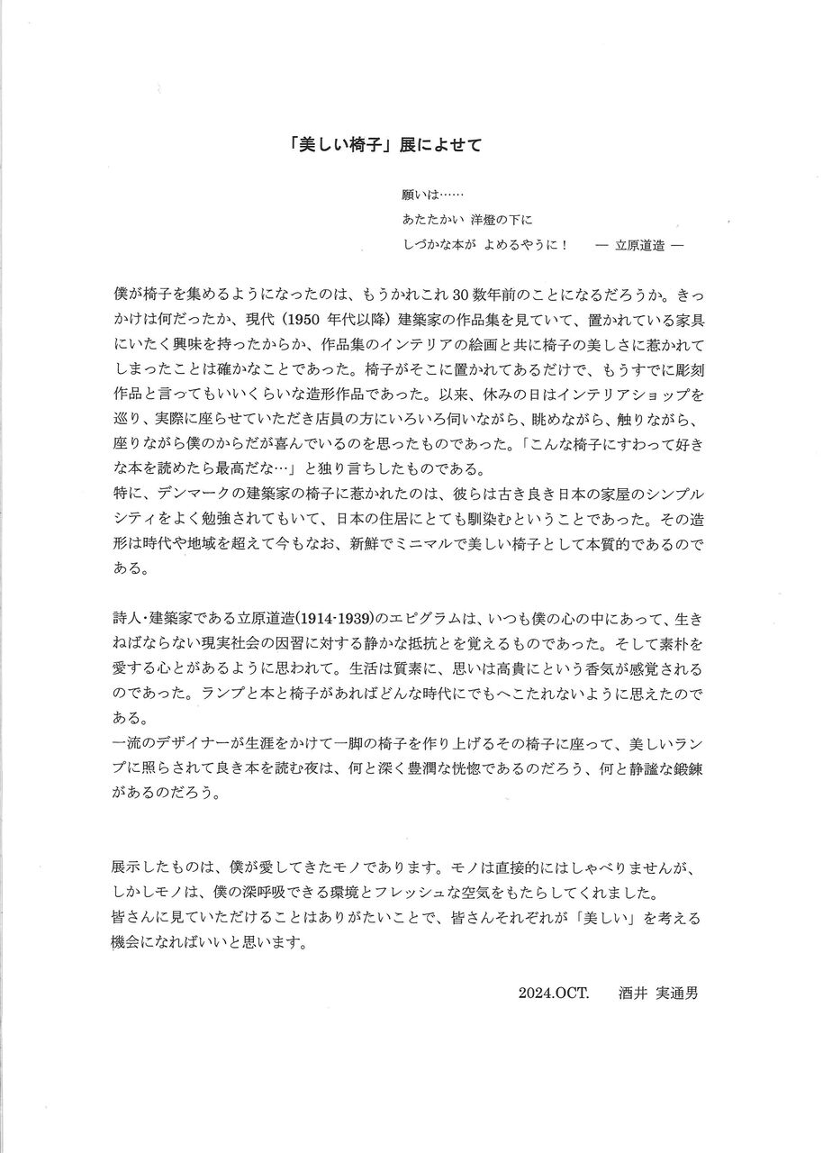 画廊宛にお送りいただいた案内には、酒井さんによる素晴らしい挨拶文が掲載されていました。