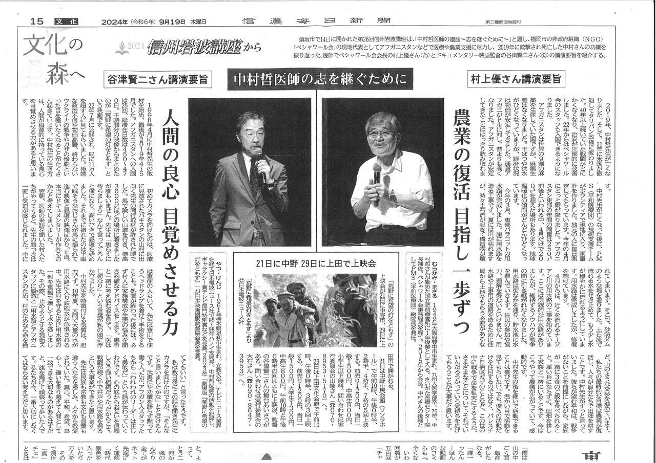 2019年12月4日、中村哲医師がアフガニスタンで銃撃され亡くなられましたが(享年73)、中村医師のあとを村上優会長が引き継ぎ、ペシャワール会は灌漑事業などの継続に全力を挙げています。