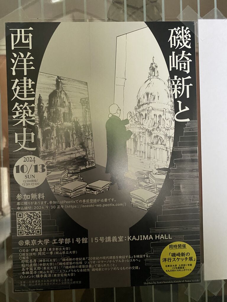 西洋建築史小委員会の学会の発表だそうで、募集とともに会場120席がすぐに満席になり、オンラインで聞けるようにするもすぐに人数制限に達したそうです。それだけ西洋建築史に関心があるのかというとそうではなく、私を含め、「磯崎新」という名前で申し込みをした方がほとんどだったとか。