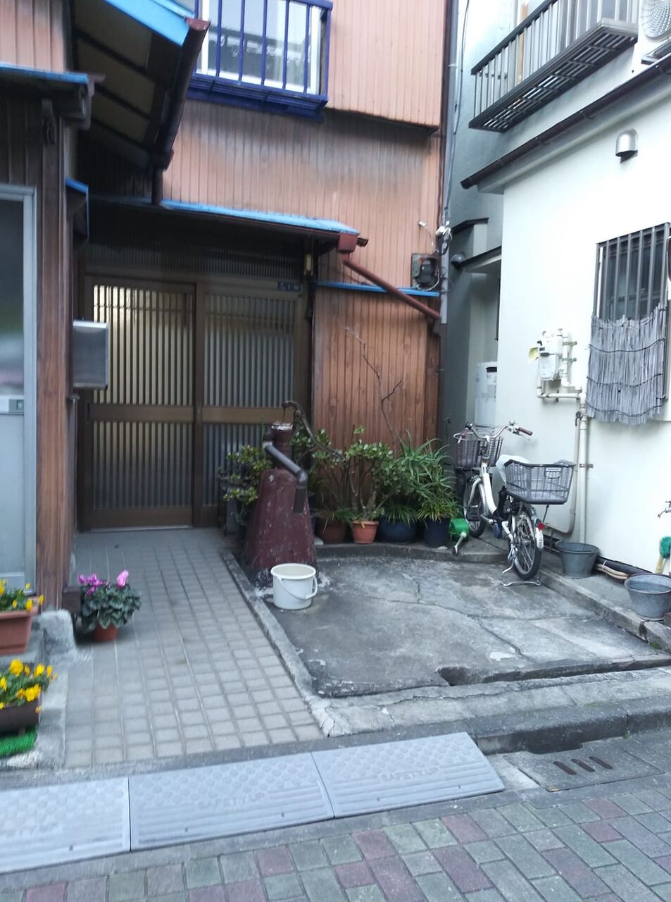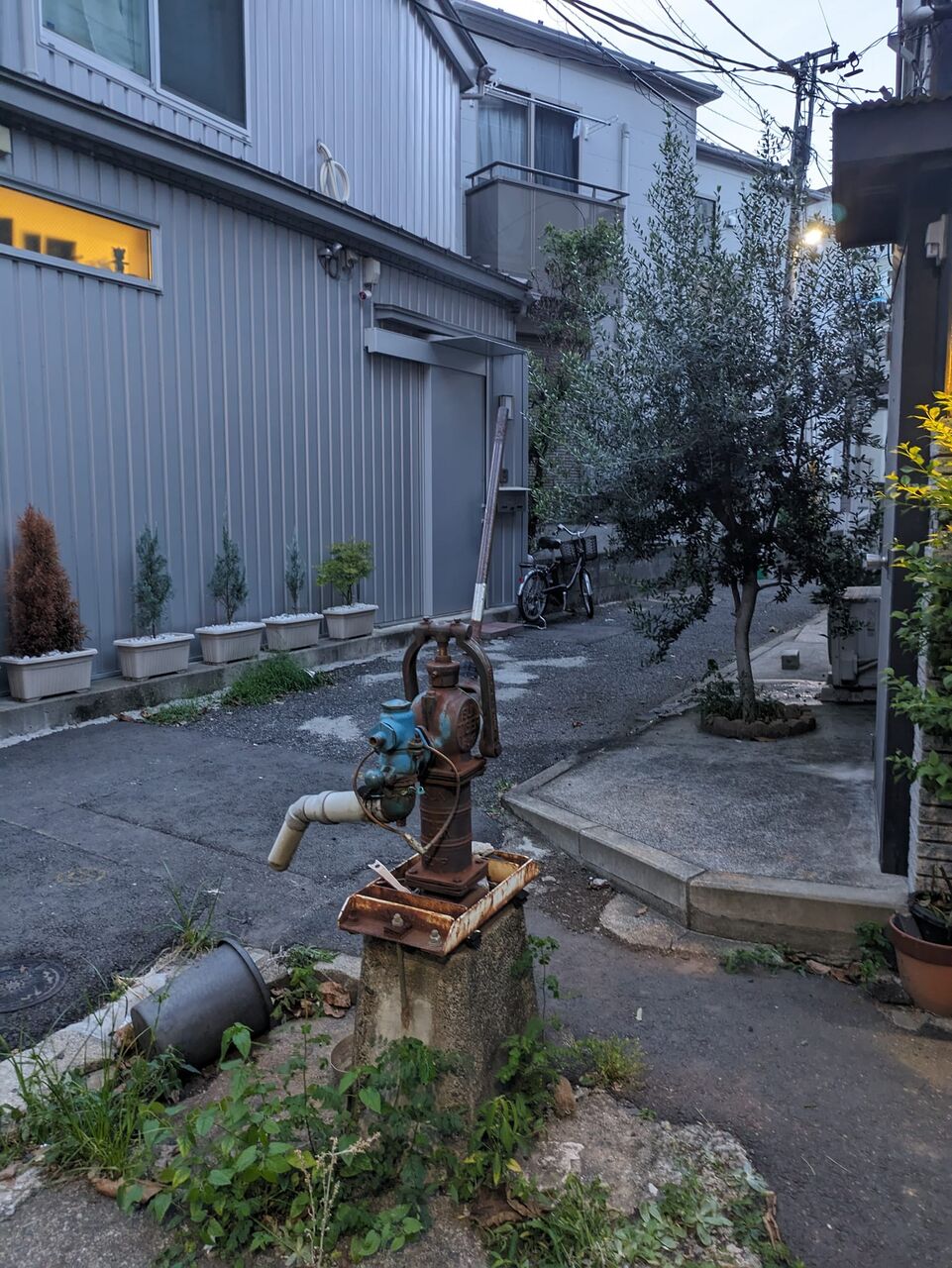 雑司が谷三丁目 クランクまたクランクの超細路地の迷宮 その奥 残されている全身赤錆ポンプとその左の洗い場 日々の暮らしになくてはならなかった共同井戸 この辺りに棲んだ人々の残留思念が立ち込める