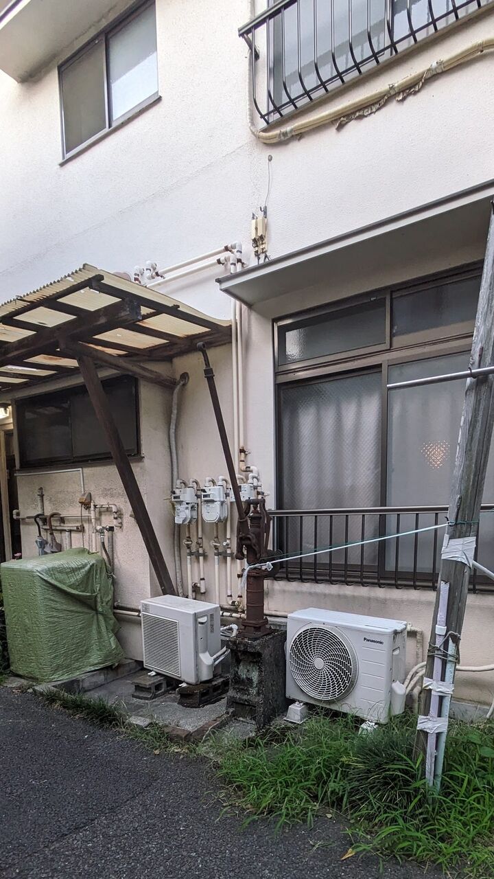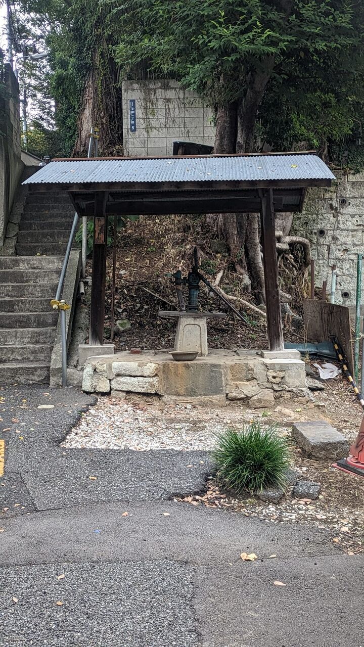 代々木一丁目 崖下の路地は旧代々木川跡 蒸し暑さに冒されて妄想 赤錆のポンプ その前は鋳鉄のぎっこん井戸? その前は釣る瓶? 洗い場 そして井戸端会議 おかみさん連中の声 流れ落ちる水 ジョジョジョジョジョジョ