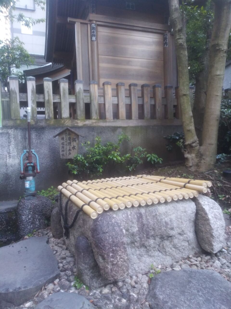 東京日仏学院入口脇 とても小さな築土神社 史跡「掘兼の井」は現役井戸 「共同井戸として永い間生活に使われてきた。」と 人は水と生きてきた ここの町名は「市谷船河原町」 「船」?「河原」?その匂いも無いのに