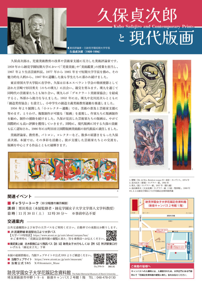 埼玉県・新座市にある跡見学園女子大学花蹊記念資料館で「久保貞次郎と現代版画」展が開催されており、栗田秀法先生のギャラリートークに参加したので、ご報告いたします。