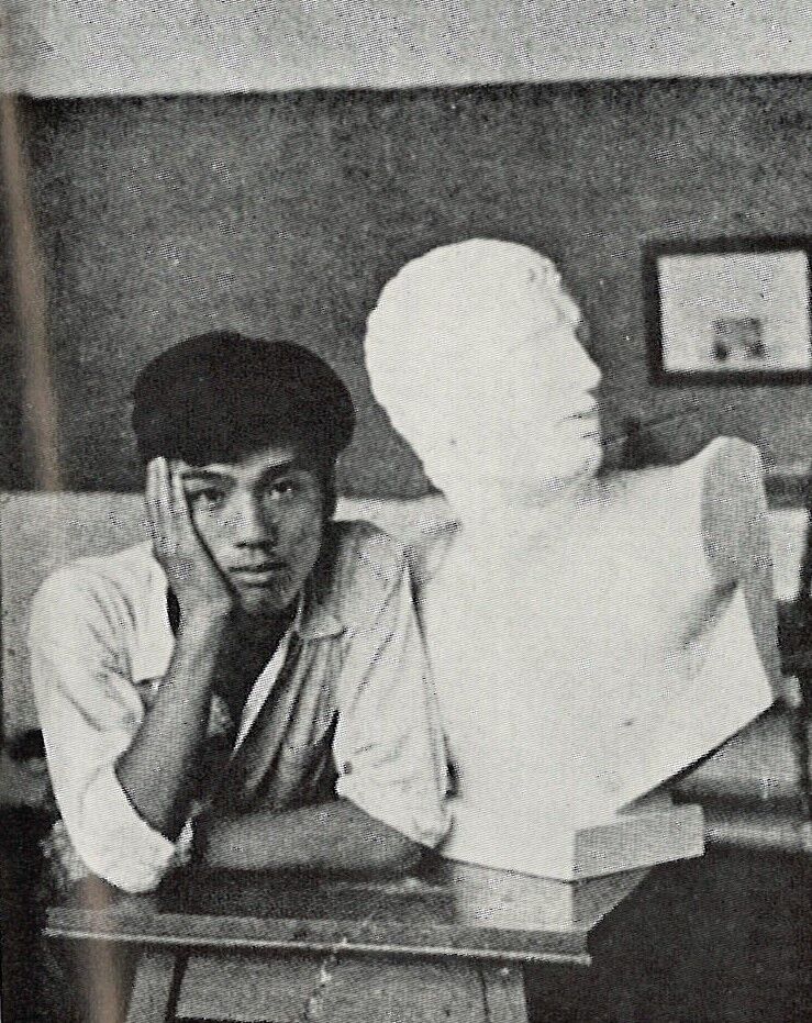 1950年頃からアーティストとして活動を開始。作家仲間の靉嘔・瑛九らから久保貞次郎を紹介されます。1960年代はニードルで銅板を引っ掻いていて描写するドライポイント作品を多く制作しました。特に海外で「新しい表現」であると高く評価されたと言います。