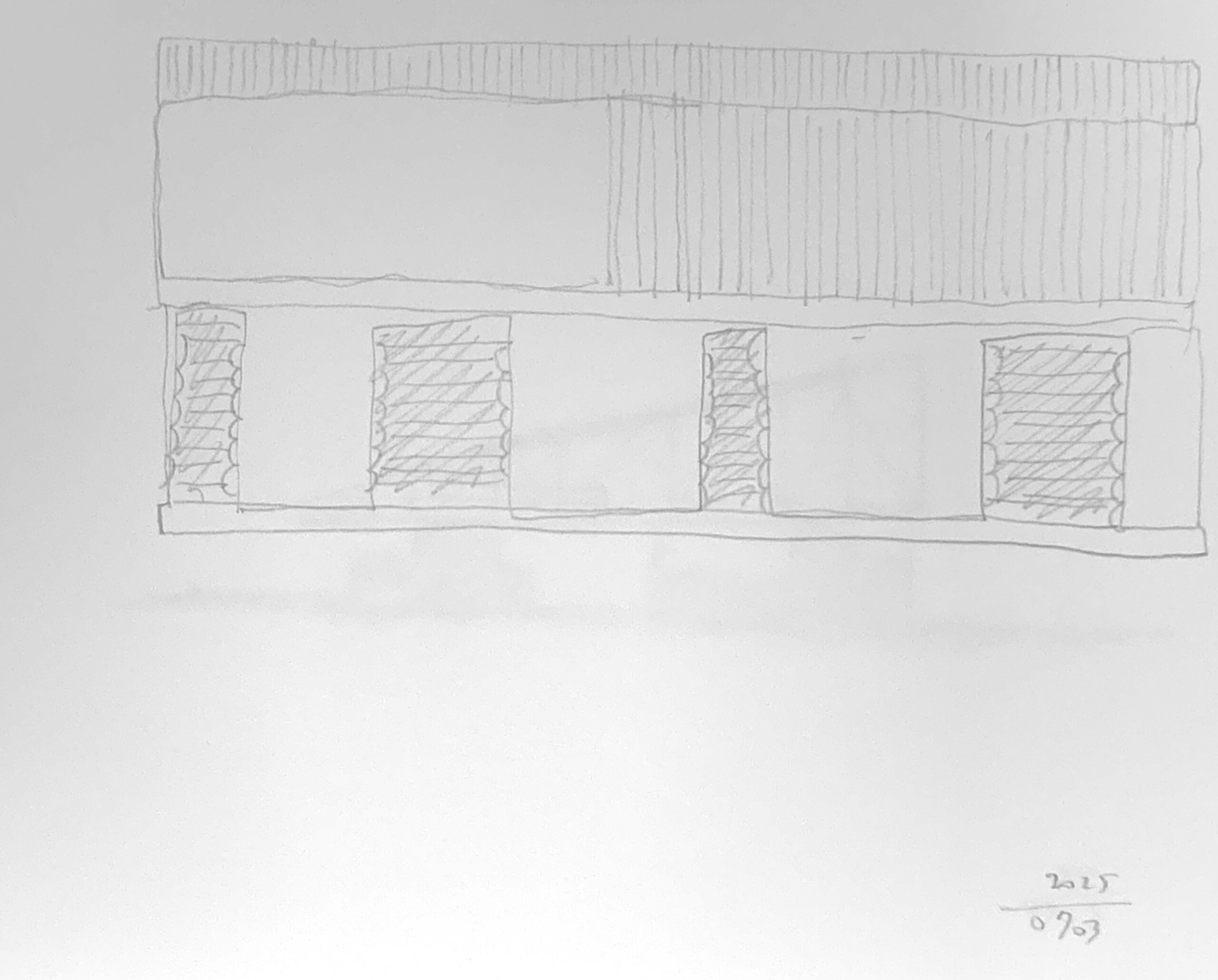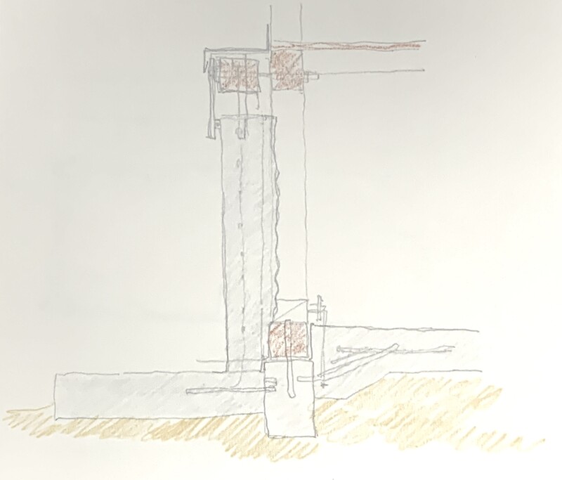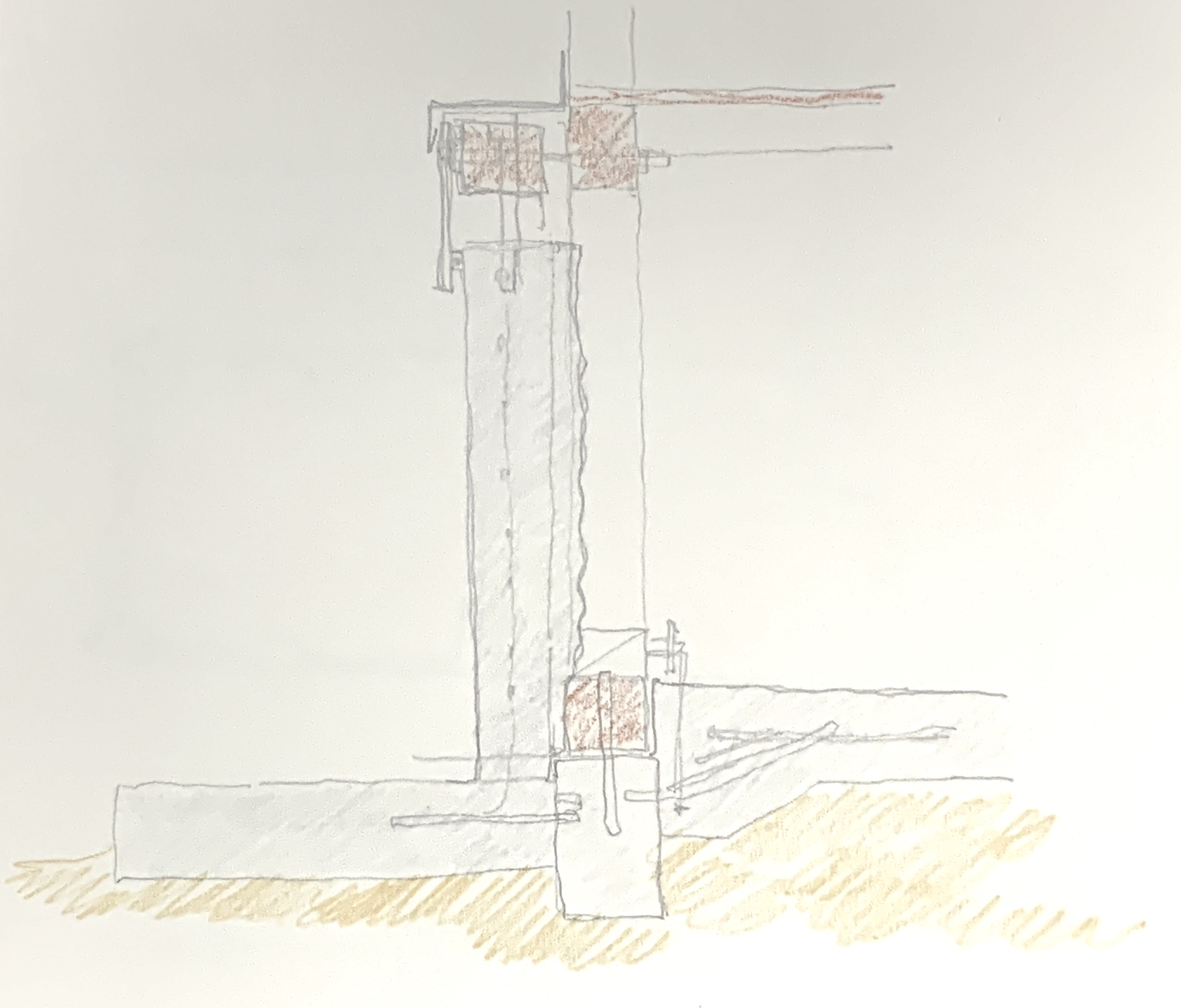 (建物正面のコンクリート壁柱に関するスケッチ)