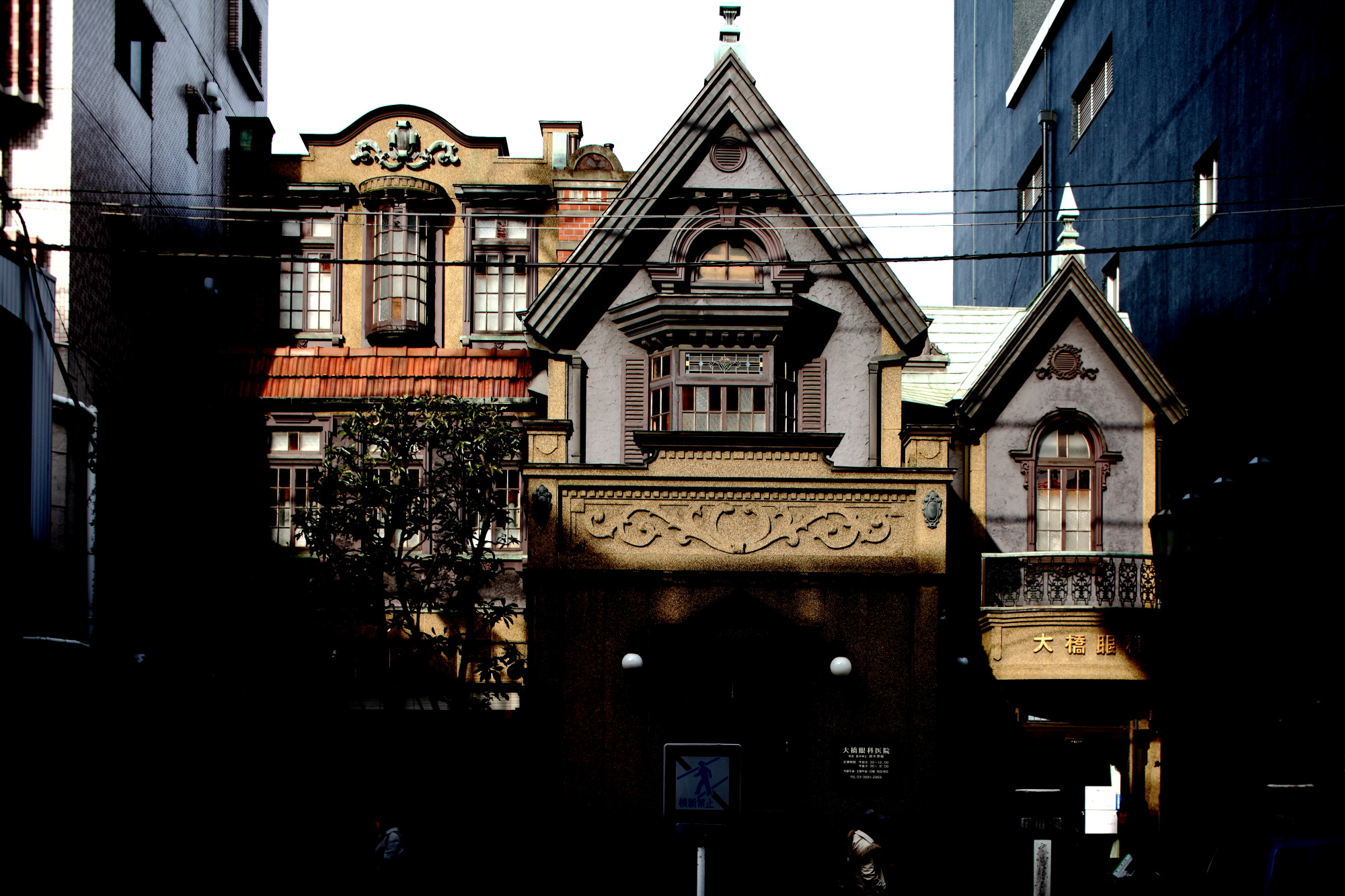 ph14 大橋眼科医院。1917(大正6)年築の旧医院の雰囲気を残し、1980(昭和55)年に建て替えた建物。北千住のランドマークの1つ。同医院は2021年に閉院し、取壊しが憂慮されたが、千住大橋付近に移築再建されることになった。千住3-31。2010.2.8