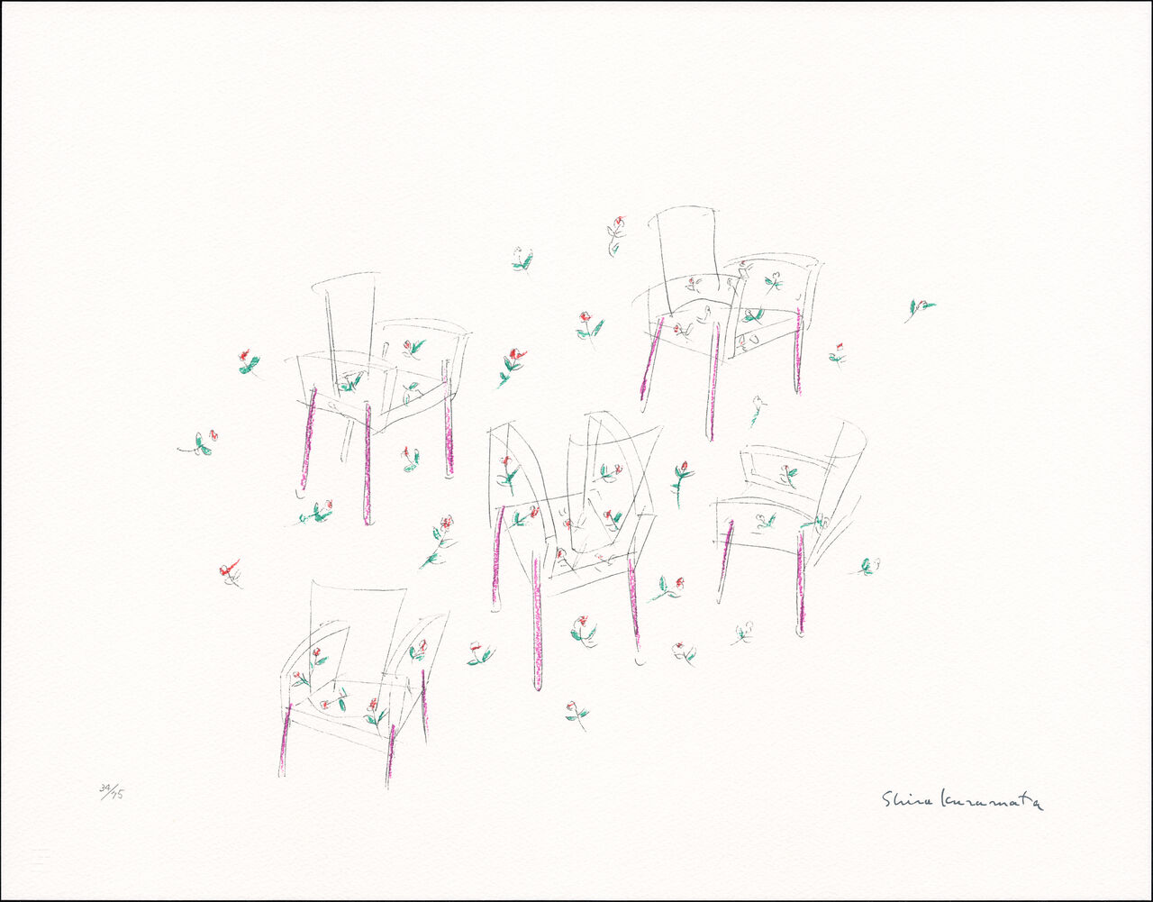 また、建築空間に美しいオブジェを残し、1960年代半ばからデザインの分野で革新的な作品を発表した世界的なデザイナー倉俣史朗(1934-1991)が遺した貴重なスケッチをもとに版画にしたシルクスクリーン作品集「倉俣史朗 Shiro Kuramata Cahier」や家具などもご覧いただきます。