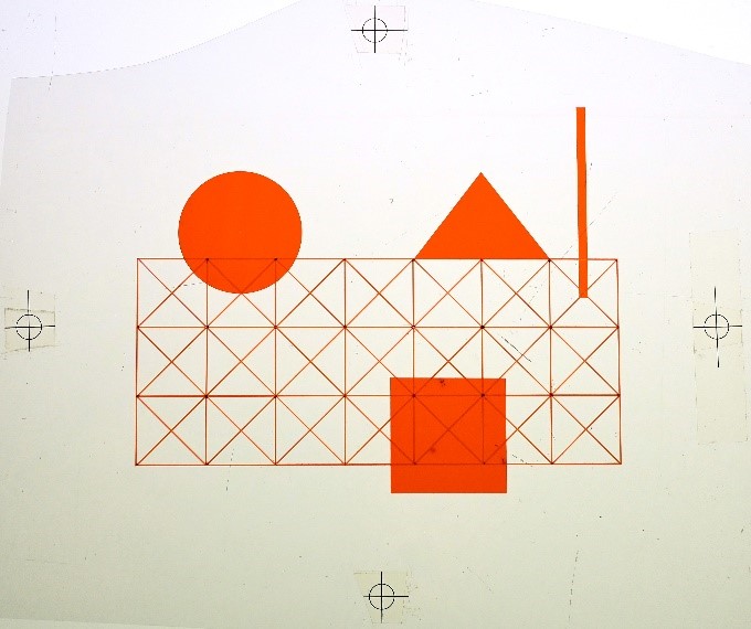スミ版と△〇□の色版のフィルム2枚を重ねた状態