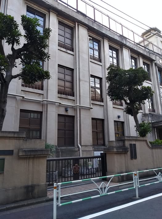 広尾小学校 見惚れた「寂」 校門の脇に埋め込まれたプレートには「文化庁登録有形文化財」 右方から守衛さんがサーっと迫って来たのでそそくさと離れて不審者になってしまった夕刻