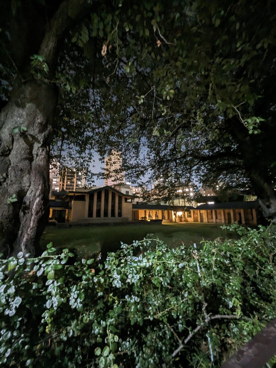 自由学園の明日館 午後8時少し前 朝昼夜いつだってここで足止めさせられてしまう いちゃもんのひとつもつけてみたい が いつだってここでしばらくボーっとさせられてしまう で 去る