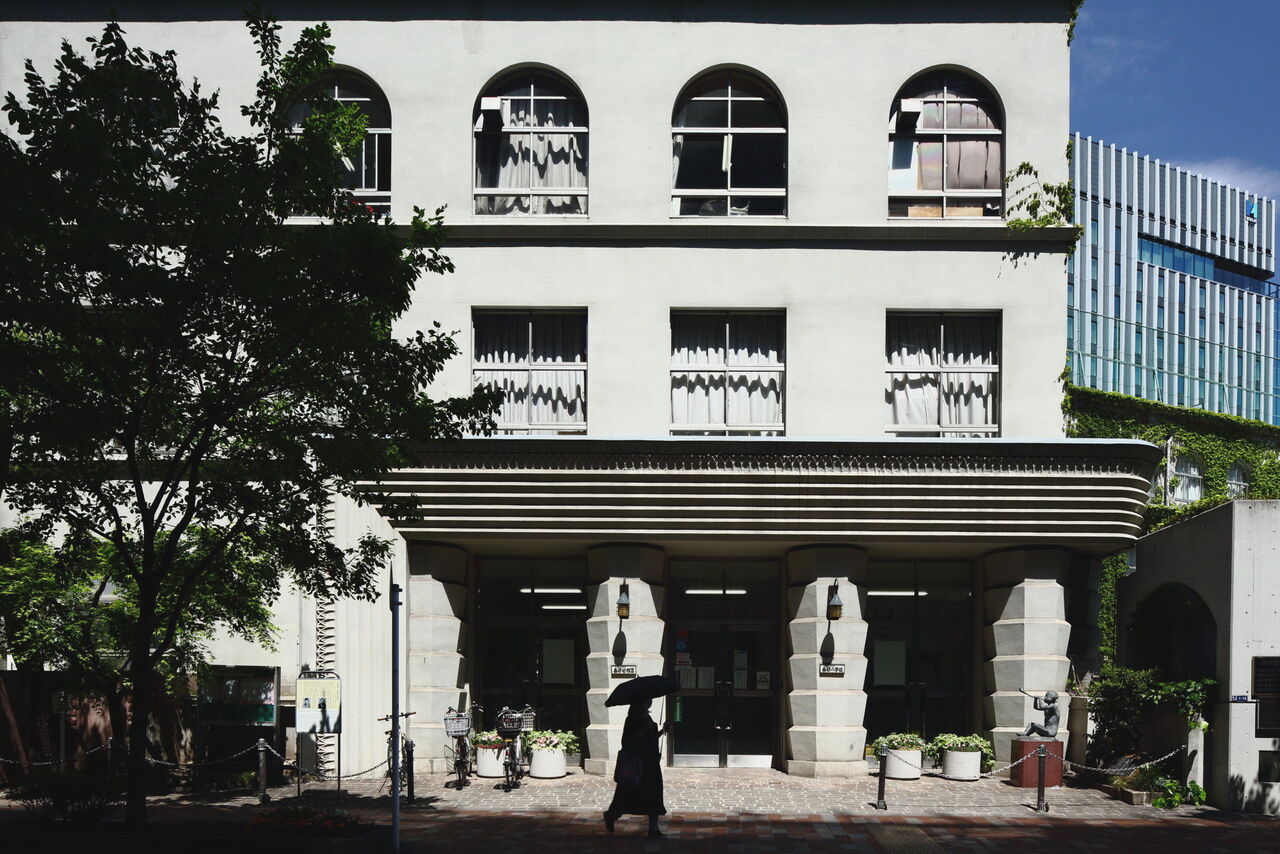 ph10 みゆき通り。泰明小学校。1878年の創立。もとは赤煉瓦の校舎だったが、関東大震災で全焼、現在の校舎は、震災復興事業の一つとして鉄筋コンクリート造りで再建され、1929年4月に落成式が行われた。銀座5-1-13。2021.4.15