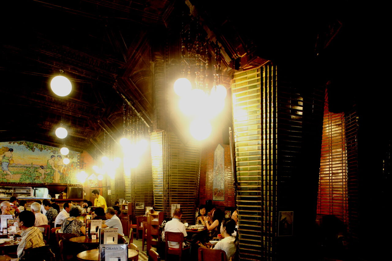 ph4 銀座通り。ビヤホールライオン銀座七丁目店。大日本麦酒の本社ビルとして1934年に竣工した。1階のビヤホールは現存する日本最古のもの。アールデコ風の装飾や正面奥のモザイクスタイルの壁画など、店内はほぼ開店当時のままだという。銀座7-9-20。2009.8.19