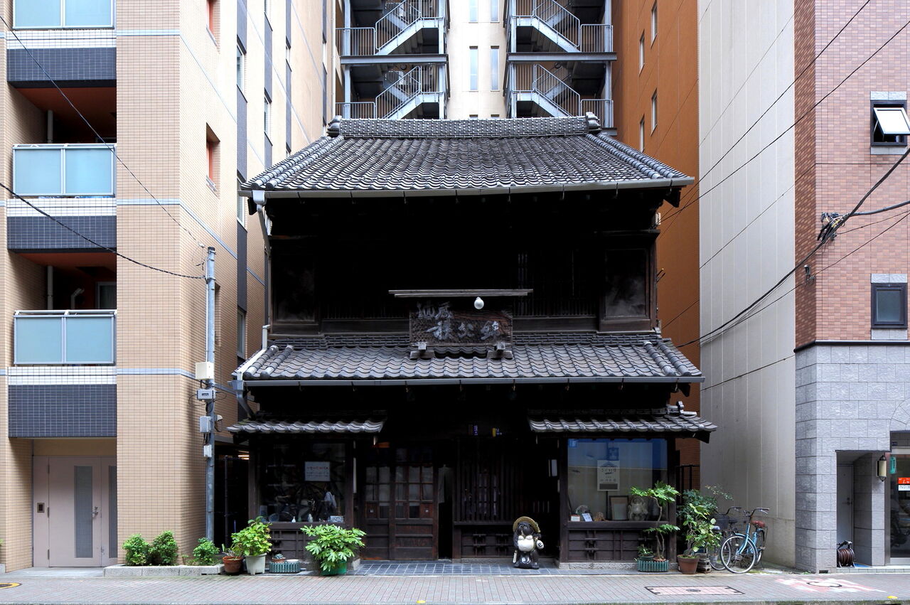 ph23 木挽町仲通り。酒蔵 渡邊。瓦葺き二階建ての重厚な店舗は1927年に建築された。銀座2-13-14。2024.10.24