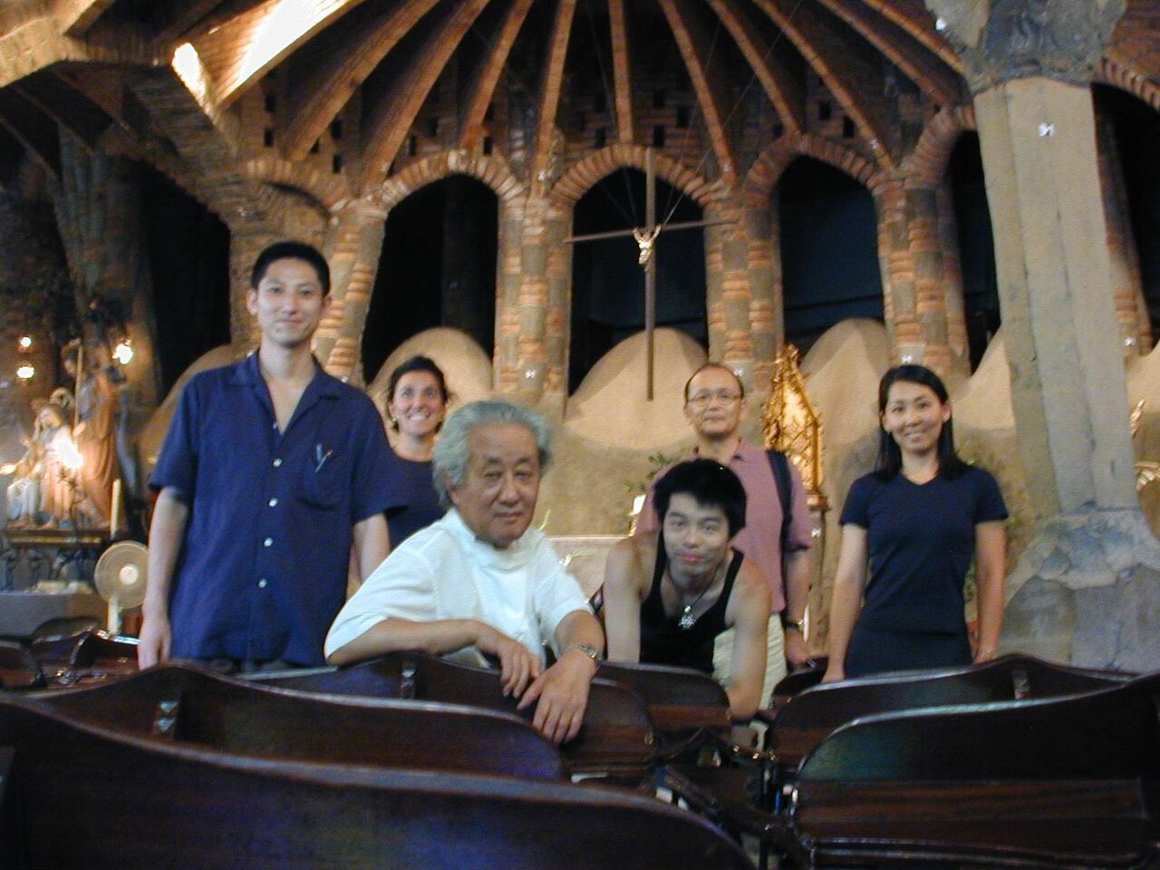 6.コロニア・グエル地下聖堂の内部でスタッフと一緒に撮影
