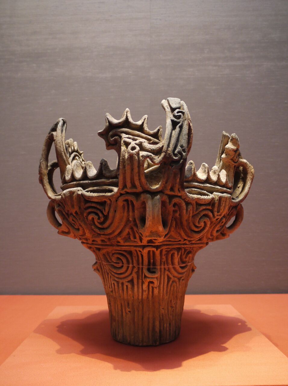 14.伝新潟県長岡市関原町馬高出土の火焰型土器。縄文時代中期