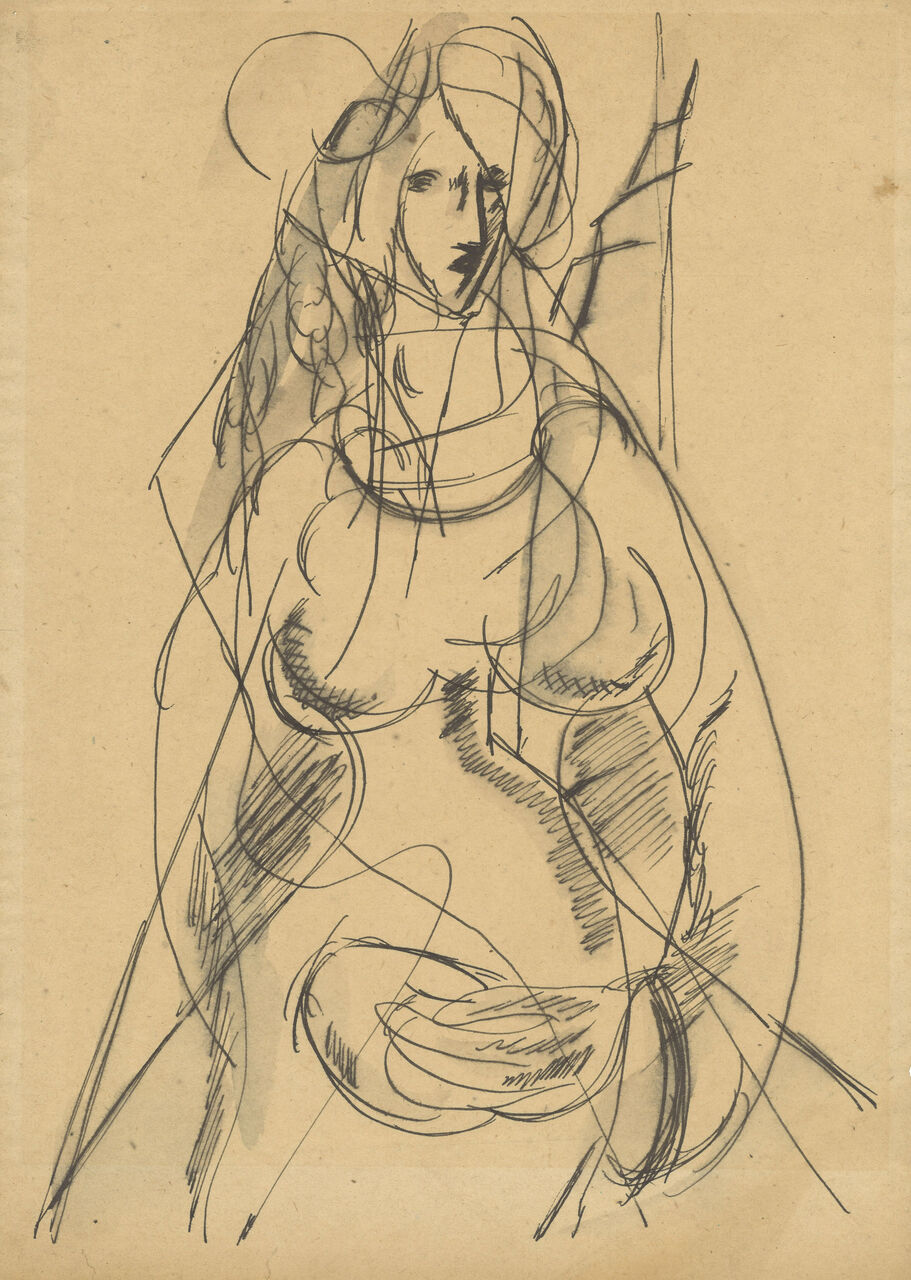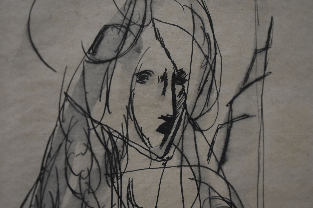 「竣介の作品作りの原点はデッサンにあります。日々スケッチを描きつらね、手で覚え、記憶に刻み込まれたイメージが、デッサンを通して作品に昇華していったのでしょう。描かれた人物の多くが男性であれば竣介自身、女性の場合は妻禎子を彷彿させるのは、やはり竣介の頭に最も強く摺り込まれていたイメージだからではないでしょうか。」