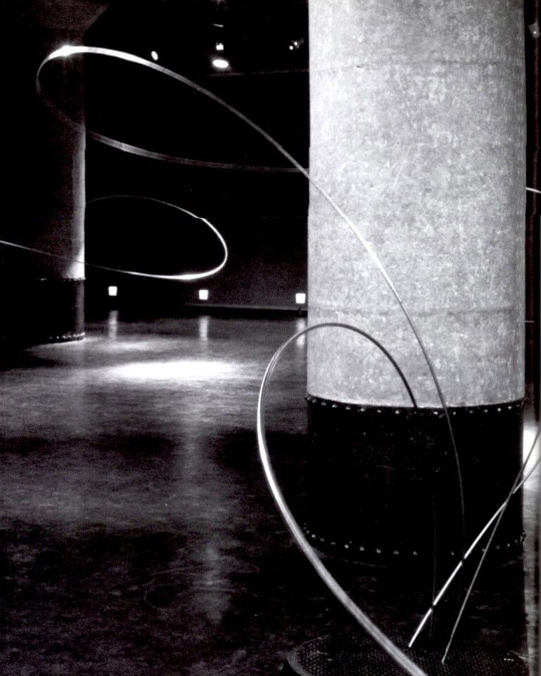 8月に信州犀川の展覧会から戻ってすぐ展覧会依頼を受け、9月末の会期だったのでひと月少しの制作期間しかなかった。銀座七丁目の地下、空調室跡の天井の高い狭い空間だった。初めての床置き壁体を制作した。リシツキーの“雲の鐙”へのオマージュ。上辺が横に突き出ている。