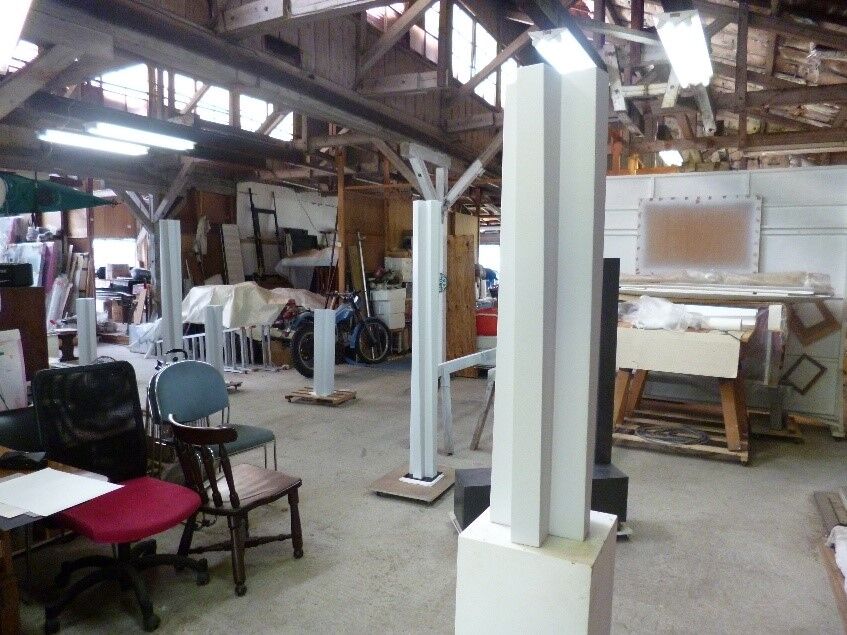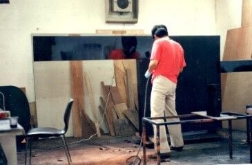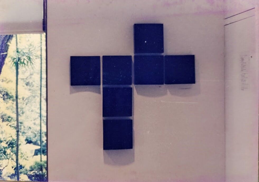 1979年4月から1年間、成田克彦担当の聴講生となり、大学には定められた制作費だけ納めればよい制度だった。さっそく発注した四八合板(120x240cm)を造形大プロダクトデザイン木工房でパネル用に細い矩形材にカットしてもらった。聴講期間の制作は10月の真和画廊個展(1979)とリンクしていたので、部材は文京区本郷の(株)ニッソウのマンション宿舎に運び、一階のベランダで業務後、毎日制作できた。成田克彦は大学の帰途たびたび立ち寄ってくれた。成田と同じ年頃の社長阪田もいったい何をしているのかと興味深そうに覗き込んだ。自分が美大に籍を置いていることは承知で4月から採用され、数字にめっぽう強いが夜は池之端界隈で遊んでいて自宅に居ないと見受けた。母親は伊東深水の弟子だったというから、業務をはみ出た制作も許容したのだろうか。たまに気をまわしてパースやレタリングの仕事を持ってくるのが煩わしかった。