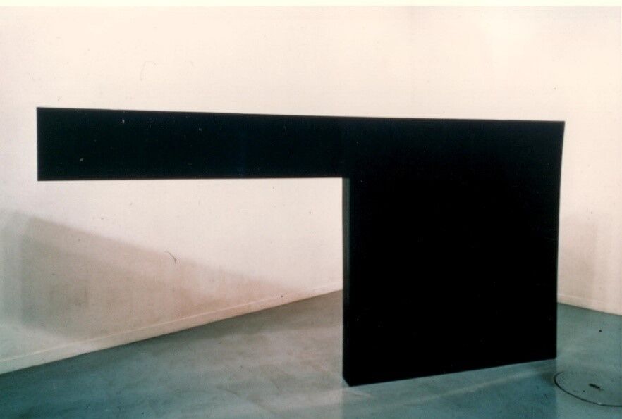 田園調布の坂の中途の住宅街にあり、池と竹の植わったこじんまりした庭をくぐった正面を解放した画廊だった。前年の山本美保との“ディソナンズ展”につづく個展だった。ひきつづき、黒いウレタン吹き付け、水研ぎ研磨交互重層鏡面仕上げである。ここで冒頭に記したように宮脇愛子から黒い作品制作を継続するように進言された。