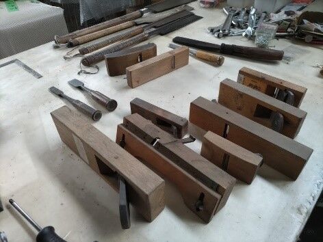 胴付き鋸と鉋と鑿により曲面を支える竜骨を組む