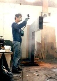 【1987エアガンとコンプレッサー圧縮空気による黒色塗料吹き付け】