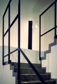 銀座ルナミ画廊は2階階段を上って搬入しなければならない。ところが狭い階段を上がって右扉を作品が通過できない。2階に縦長の窓があったのでロープで吊り上げて運び入れた。