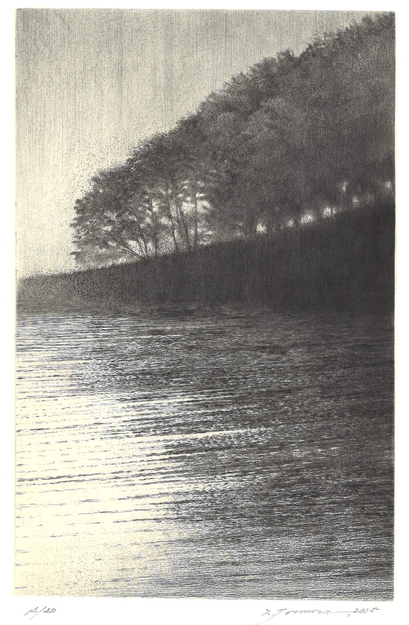 現在は盛岡市在住。風景描写の中に、現実には見えないが確実に存在しているものを、自然の時の移ろいや空気感に託して、一本一本丹念に線に刻み込んで描く。