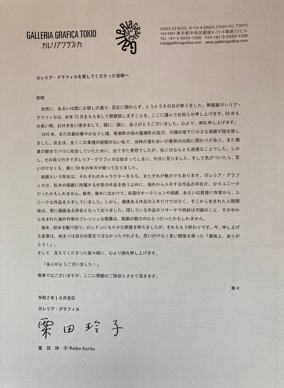 閉廊の挨拶状 2020年10月(クリックして拡大)