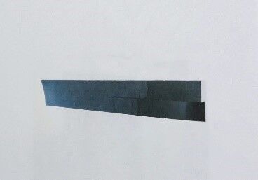 この形は1987年のギャラリー+1におけるほぼ同寸の黒い鏡面壁体を継承しているが、今回のこれは上辺部分10cmに平行して切り込みが入り、反りとむくりが反転するトポロジカルillusionが施されている。正方形にL字を引っ付けたようなこの形、アトリエ隅に転がっていた60×90cmの端材だったが、シルエットが面白かったのでこれを底板にして7㎝厚の枠をつけパネル化したのだ。この図は、1993新潟の創庫美術館に再設置したときのものである。