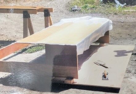 カシュウ吹き付けのたびに水研ぎ研磨して平滑にしてから、さらに吹きつけるという、ウレタン塗装とまったく同じやりかたで厚みを重ねていく作業をした。