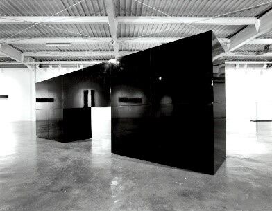 ギャラリー宏地は神田の医療機器問屋街の一角にあった。櫻井美智子の展覧会だったかオーナーの石坪夫妻と話すうちに、杣木の従兄弟の石坪と親類筋ではないかみたいな話になって個展をさせてもらった。ぜひこの会場で、前年αM個展1993の発展系を試みたかった。重力を意識した、直角空間による鉛+黒いurethan鏡面を組み合わせた。