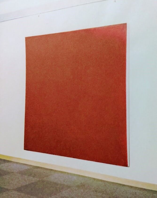 今回はホルベインから手に入れたカドミウムレッドによる彩色であった。ちょうど成田克彦夫人から遺品の極厚の帆布一巻、成田さんが炭を焼いた八王子の青木製材所にあるというので、もらい受けたばかりだった。これを使い、パネルに帆布を糊張りして開始したのだが、その極厚目地を平滑にするため石灰を用いて壁塗りのように箆付けしたので下地の段階で大変な重さになってしまった。