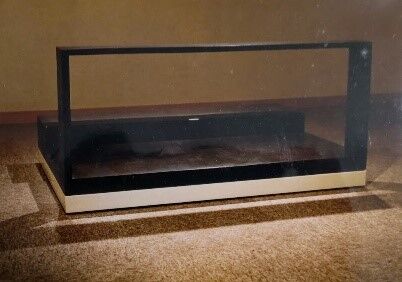 捻りも歪みもない。直角空間構成であった。床に3点と、壁に12cm×270cmの横に細いL形鉛を噛ませたウレタン黒パネルが2点の全5点。1㎜厚の鉛ロールから合板表面に接着したらすごい重さになってしまった。1993αMを継承した通気空間ある直角体を構成した。
