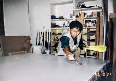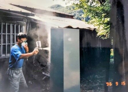 【1996ギャラリー宏地個展準備urethan吹き付け塗装と研磨】