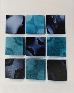 ギャラリー個展作品において、水性アクリリックによる、原色(赤、青、黄)medium交互吹き