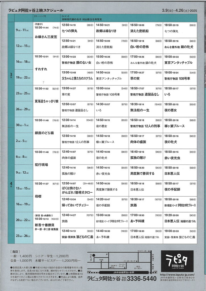 さて本日の本題、東映現代劇の名手村山新治の監督映画の連続上映です。