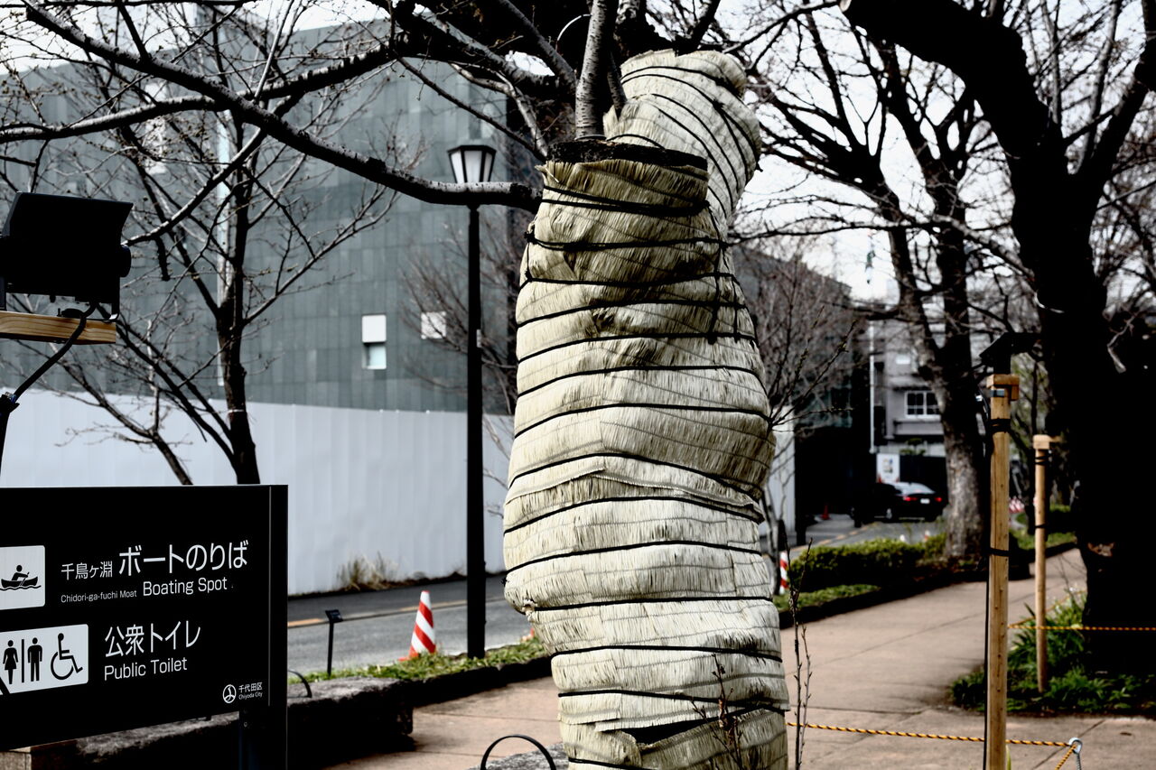 ph9 千鳥ヶ淵緑道。サクラの木に害虫駆除の菰を巻いている。北の丸公園では木を伐採していた。2024.3.28