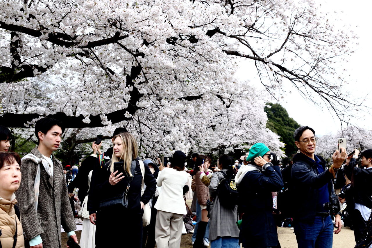 御苑のソメイヨシノには期待していなかった。というよりもなにも知らなかった。ところが入口は黒山の人だかりになっていて、入園券を求める列が続いている。なぜこんな大騒ぎになっているのか。園内に入るとすぐに分かった。