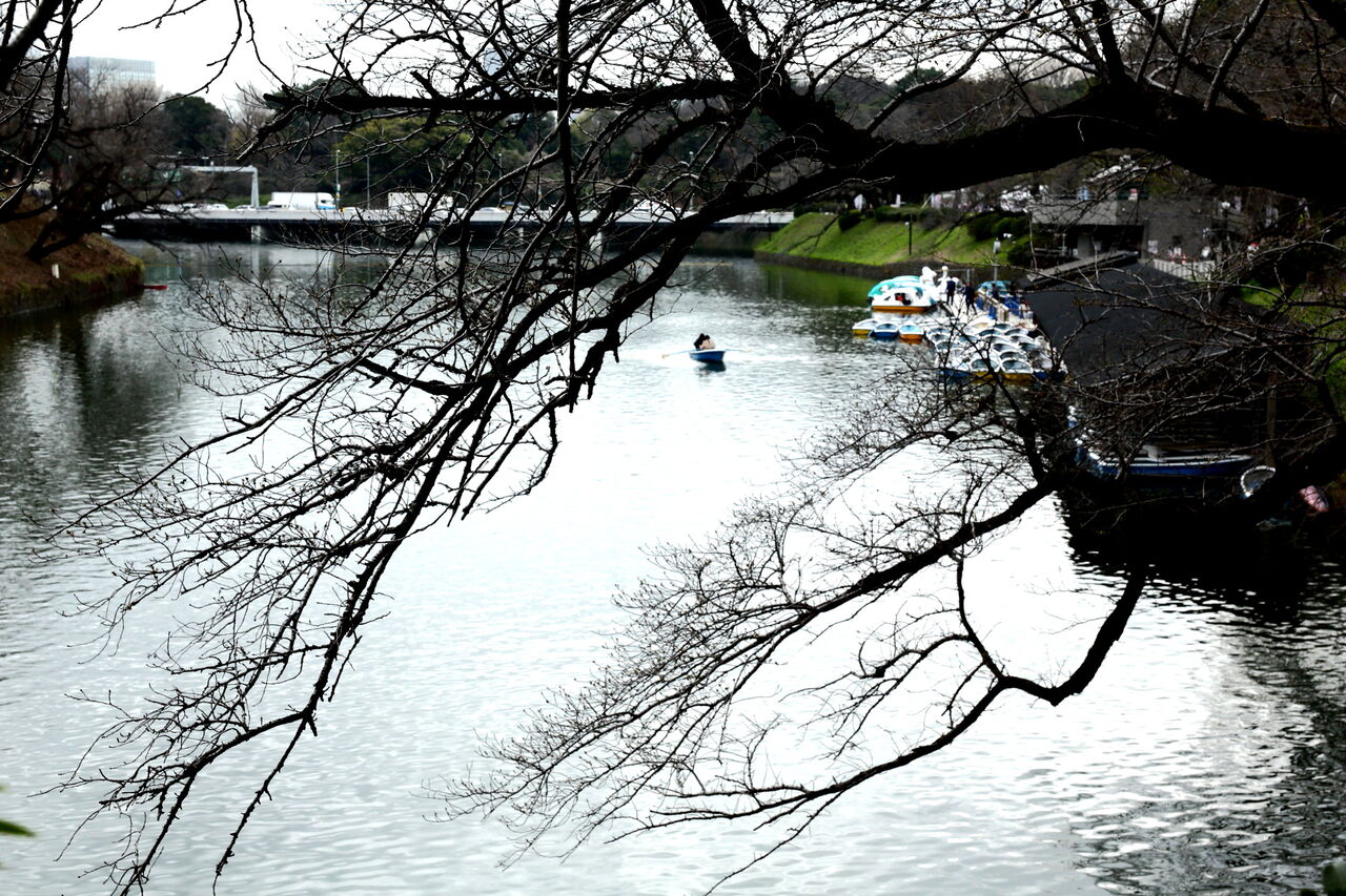 ph7 千鳥ヶ淵緑道。閑散としたボート乗り場。1950年にできた。奥は首都高都心環状線。2024.3.28