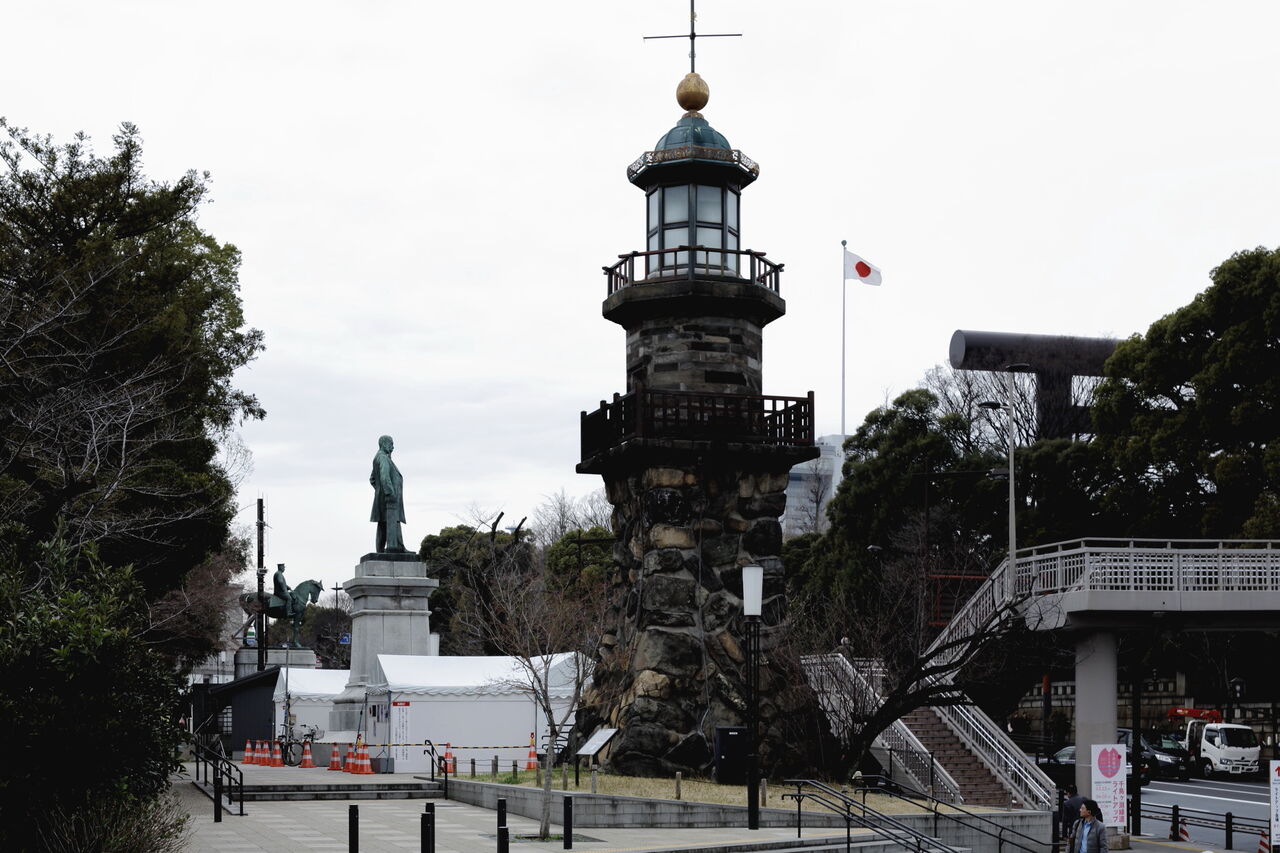 ph10 九段坂。正面は高燈籠(常燈明台)。右は開花宣言の標準木がある靖国神社。2024.3.28