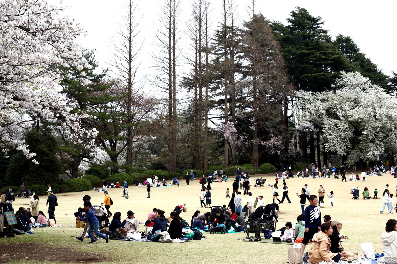 新宿御苑は八重桜の名所として知られる。先にも書いたように、開花宣言は3月29日。お目当ての八重桜はまだつぼみの状態だったが、ソメイヨシノは満開の花盛りだった。