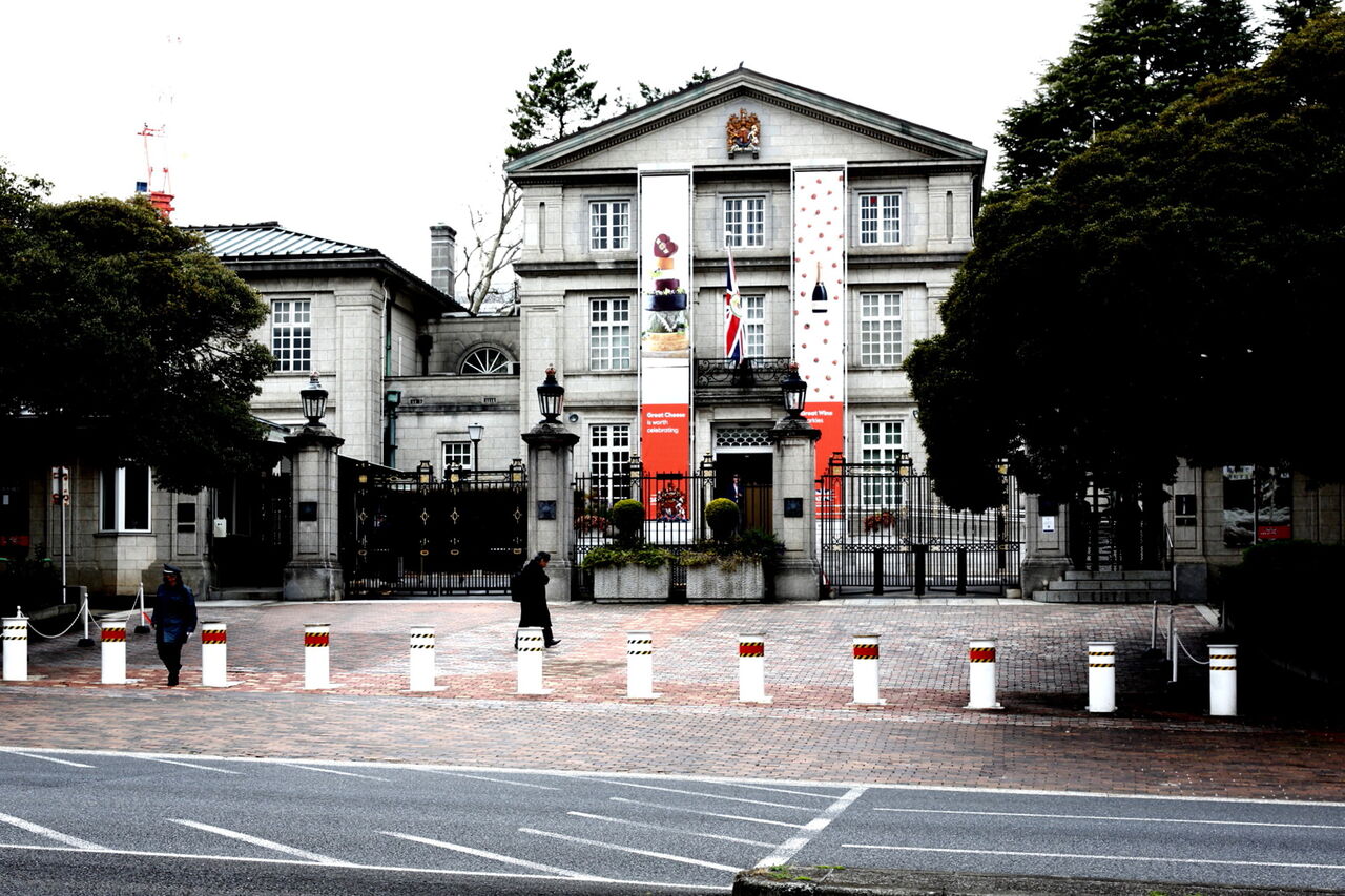 ph3 内堀通り。英国大使館。1891年、公使館前の道路にソメイヨシノを植えたのが千鳥ヶ淵のサクラの始めとされる。現在の建物は1929年の竣工。2024.3.28