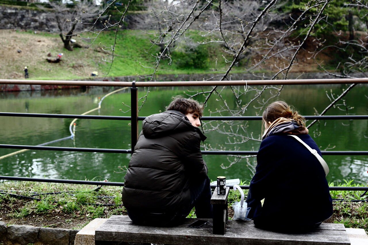 ph6 千鳥ヶ淵緑道。サクラ並木の若いカップル。2024.3.28
