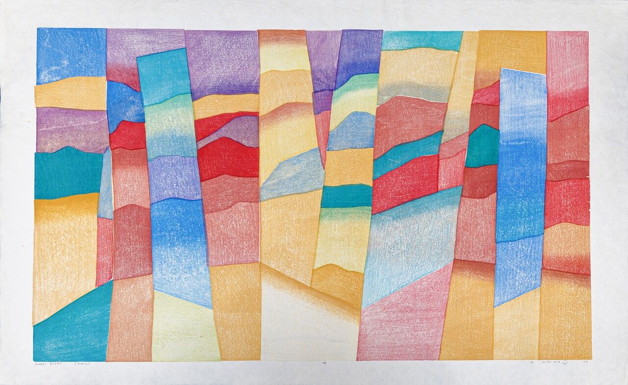 左)内間安瑆《Forest Byobu(May)》1980年 木版画 62.8×53.0cm