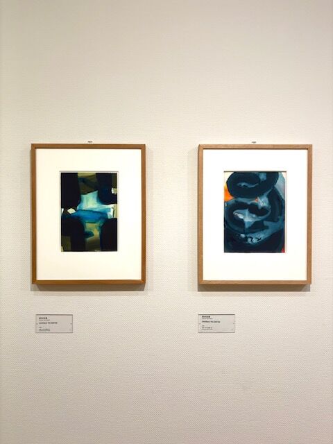 堂本右美さんの紙に水彩・アクリル絵具作品2点。