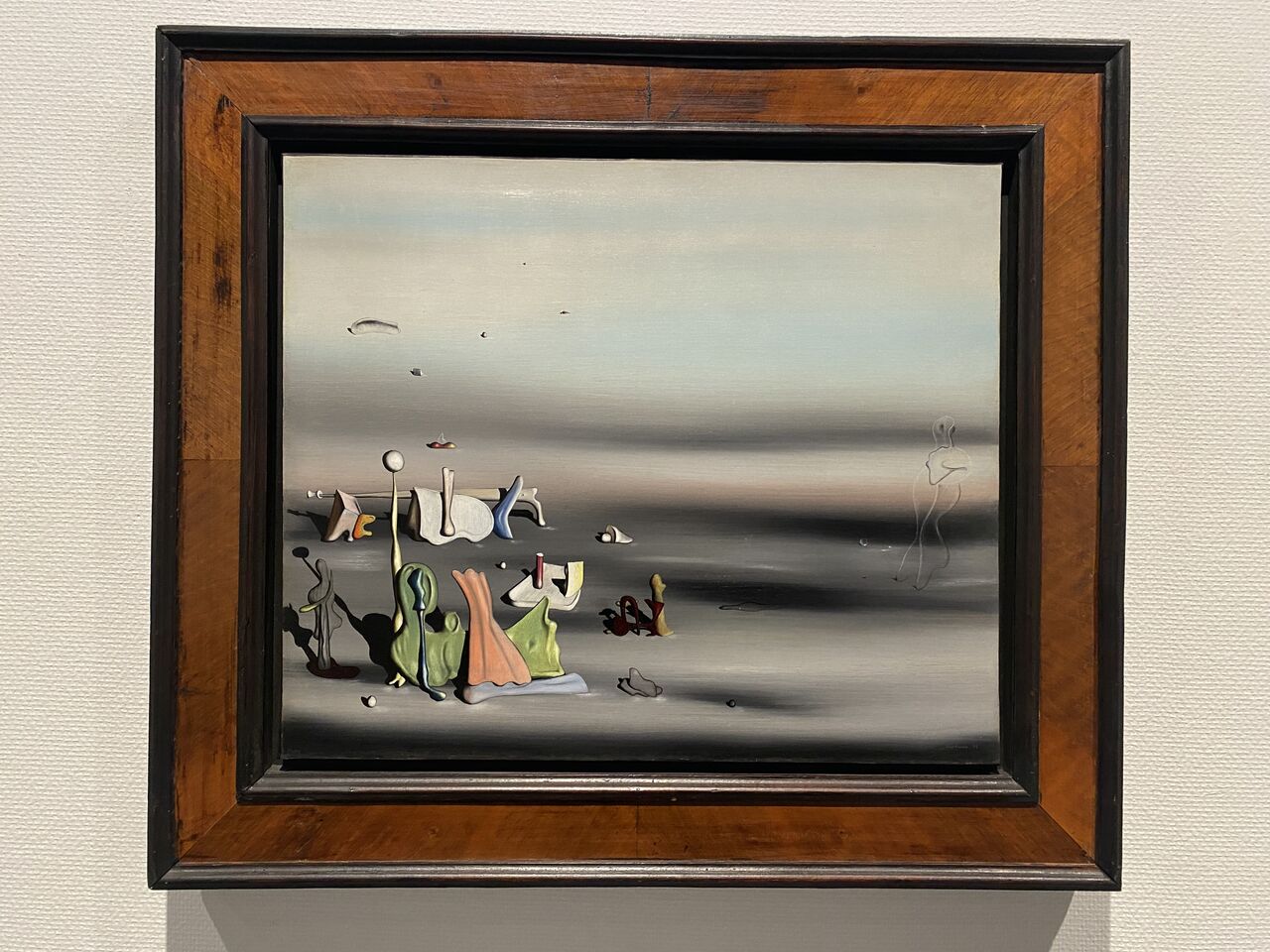 イヴ・タンギーの《聾者の耳》は、それぞれが意思を持ったかに見える謎の形の物体が、地の果てに集まっているような不思議な絵で、長いこと見入りました。イヴ・タンギーは、パリの画廊に掛けられていたジョルジュ・デ・キリコの作品をバスの車中から見て衝撃を受け、画家を志したそうです。
